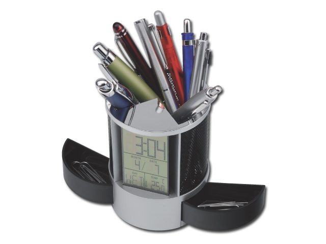 stojánek na tužky s hodinami
